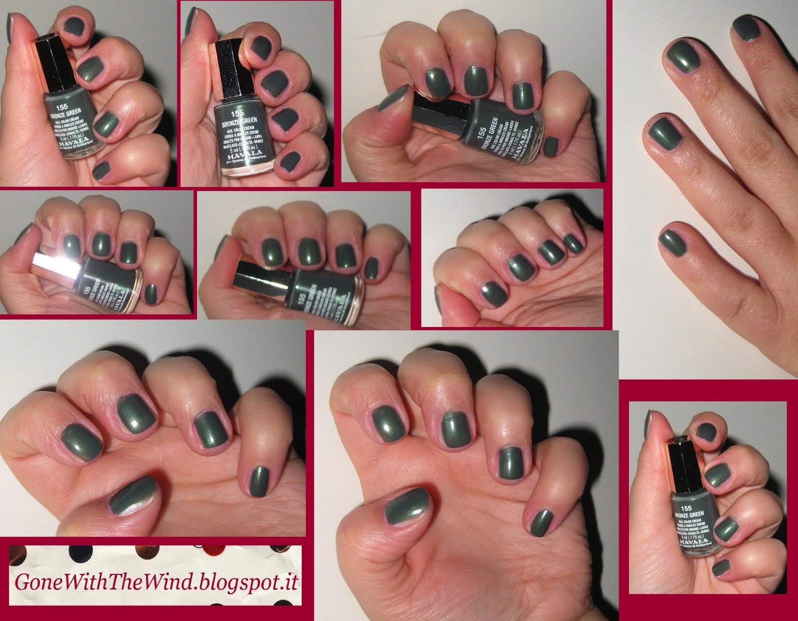 Come dice il nome stesso, è un verde scuro, con piccoli riflessi perlati e luminosi ma non eccessivi. Ecco come appare sulle mie mani la sera della vigilia: